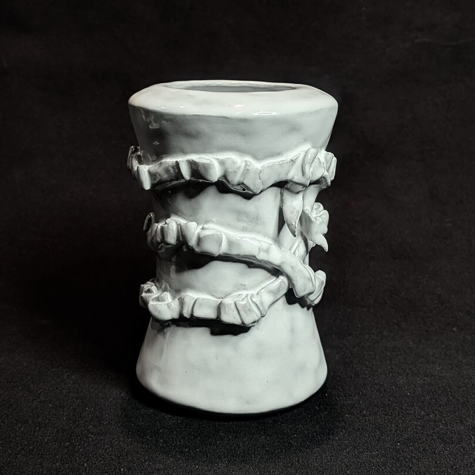 · 白釉薬から透ける色は黒い土 陰影を表しています